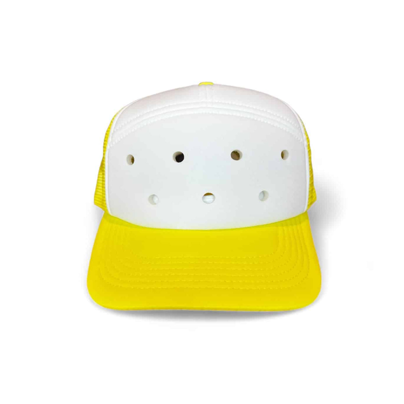 Last but not least, meet your new sunny-day essential: the Electric Lemon Swap Top. This hat is as bright and bold as they come, featuring a highlighter yellow brim and mesh that radiates energy and fun. It’s topped off with clean, solid white panels on the front and top, offering the perfect balance.